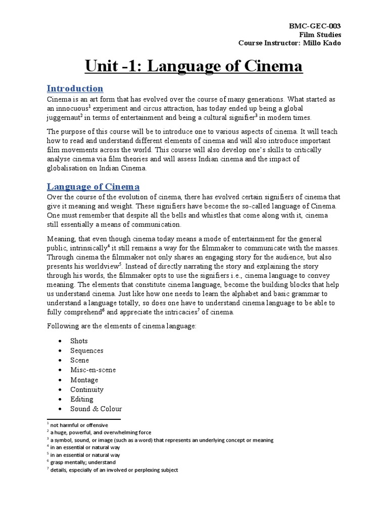Unit -1: Language of Cinema