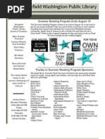 come and listen to some great writing! Call 755 2944 ext. 2 for more information. Adult Book Club The group will meet up again in September and discuss the best books we have read during the break. In the meantime, we have a great selection of new titles at the library. Grab a few to enjoy during your vacation. Happy reading! Kids Cartoon Club Were on break until September, so be sure to practice your cartooning and writing skills and bring in what youve worked on over the summer to show us in the fall. Childrens Room News Parents and Grandparents, are you looking for something to do with the kids that doesnt cost a lot of money? You can borrow our museum passes (on an adult card) and visit the Christa McAuliffe Planetarium, or the Childrens Museum. This month the Children's Museum is having their Annual Teddy Bear Clinic and Party on August 10th). The NH Farm Museum has many events planned for August, including Stories on the Farm, every Wednesday at 10 a.m. We also have passes for Seacoast Science Center and they have a full schedule this summer, including their great concert roster! Please note that sometimes passes may not be accepted for special events. We urge parents to call ahead and check before using the passes in this manner. Summer Food Program for Kids Free Meals for Children ages 0-18 The Goodwin Library is again sponsoring the Southern NH Services Summer Food Supper Site. We invite Farmington and Middleton children and their families to join us Monday through Friday at Fernald Park from 5:00 to 6:00 PM for a tasty and nutritious meal. Free Breakfasts are also available from 8:158:45 AM at Fernald Park, and Free Lunches from 11:30 AM- 12:00PM at the Henry Wilson School Playground. All families are welcome and there is no registration required! Tee ns News