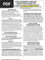 A Day in the Life of Farmington Town Photo Day Sunday, September 11 is the ten- year anniversary of 9/11. The Goodwin Library would like to honor the memory of this event by asking the community to take one digital photo of your Farmington, something that represents what is important to you in this town. It can be anything from a photo of your family, your home, or garden to your favorite local restaurant, walking trail or quiet spot. We would like everyone who can to become involved in this project- adults, children, veterans, town officials, the whole community. Please take a digital with at least a minimum of 300 dpi and email it with your title, e-mail address, name and phone number to goodwinprograms@gmail.com. A release form will be available online and at the library for you to fill out. Please note that Children and Teens need a parents signature on the release form. We will be collating and presenting these photos through several future programs. The deadline for the photos is Sept. 30. Call 755-2944 ext. 2 for more info. Please note that our regular monthly meetings will resume in September. We wish all our participants an inspired and creative summer! Gardeners Roundtable Our Gardners Group enjoyed visiting the gardens of seven fellow members during the 2nd annual Garden Tour in July. Our official meetings start up again in the fall. New members are always welcome. Come share your love of gardening, self-sufficiency skills and farming knowledge. Farmington Film Society at the Goodwin Library Join us when we return from our summer break in September for more great films and discussion. Adult Poets and Writers Group We are officially on hiatus until September. The group will take part in the Hay Day events on Saturday, Aug. 27 by holding an Open Mike session at the Farmington Recreation Center (the old Town Hall building) from 12:00 to 1:30. Bring a poem and join the fun! In the meantime, have a creative and inspired summer and