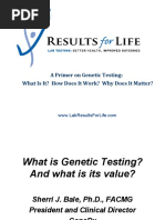 • Testing will not currently affect the ability to obtain health insurance but may affect applications for some types of risk-rated insurances