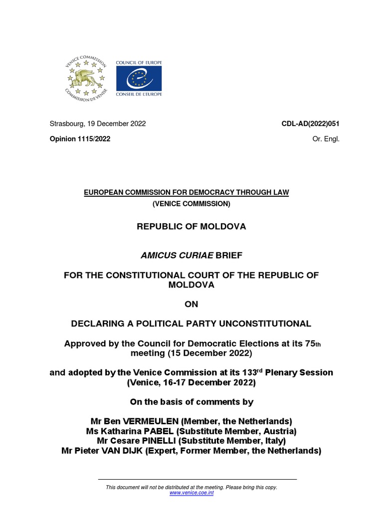 Constitutional Court of the Republic of Moldova, requested an amicus curiae brief of the Venice