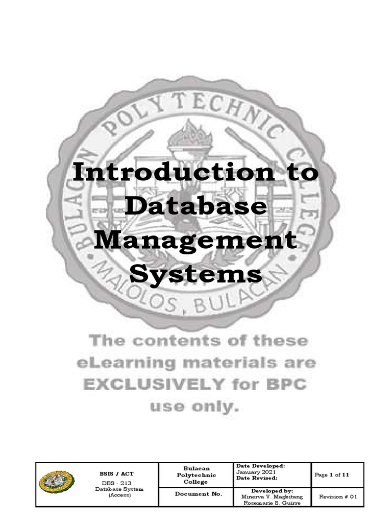 (Access) Document No. Minerva V. Magbitang Revision # 01