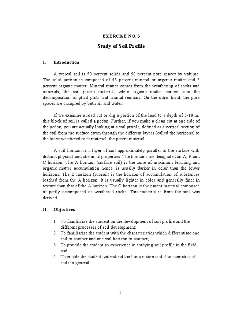 1. To familiarize the student on the development of soil profile and the