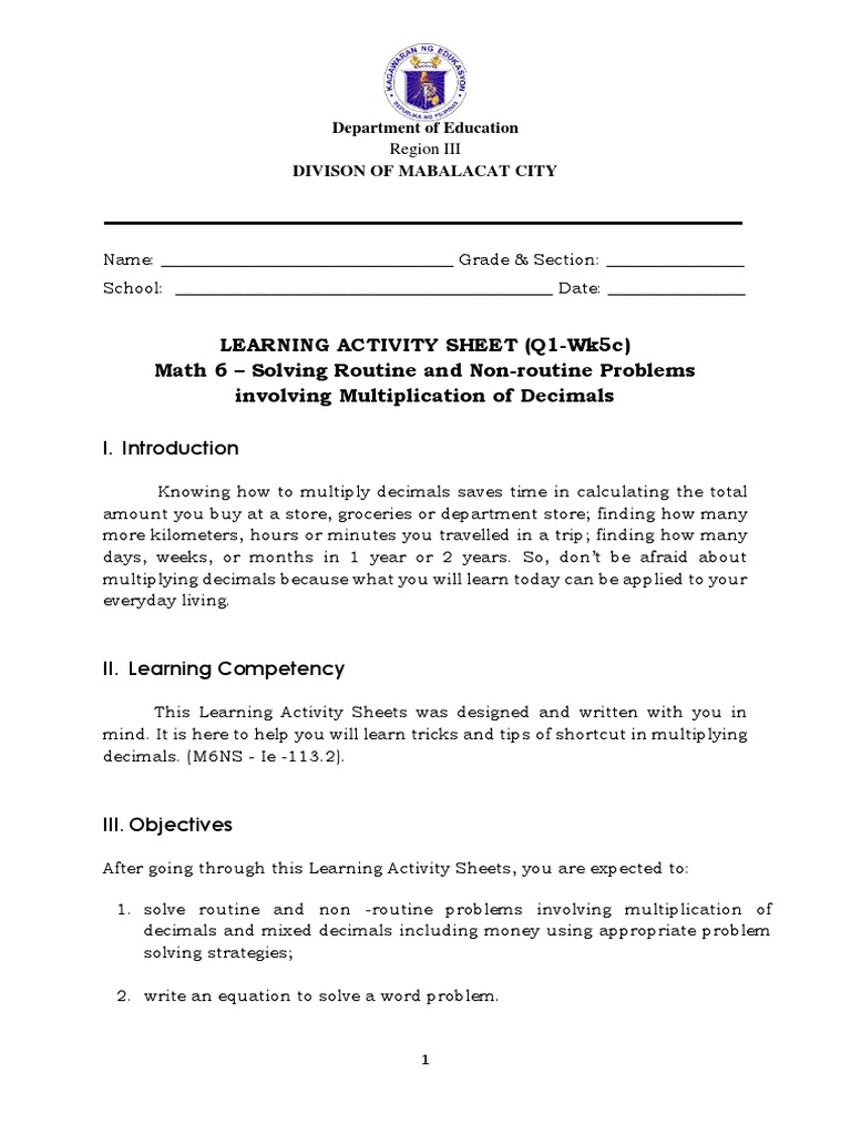 Math 6 – Solving Routine and Non-routine Problems