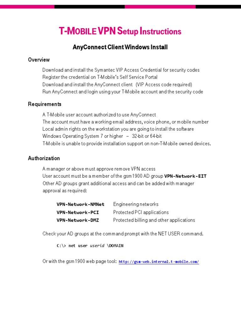 To download the Cisco AnyConnect VPN client from T-Mobile you must have: