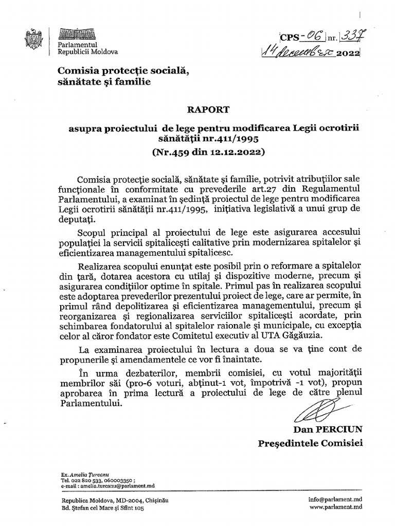 Reforma Spitalelor, Raportul Comisiei Protecție Socială Și Familie