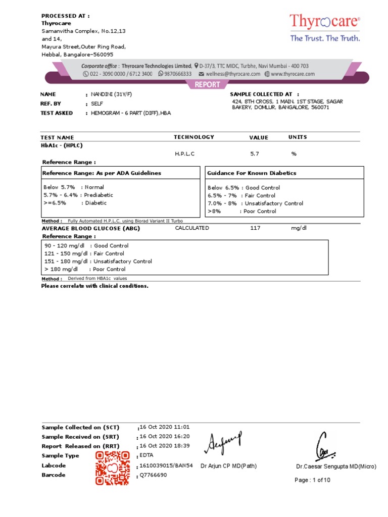 NAME : NANDINI (31Y/F) SAMPLE COLLECTED AT :