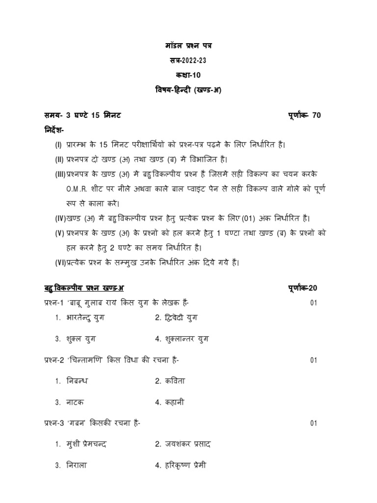 (IV)ख ड (अ) म बहु वक पीय न हे तु येक न के लए (01) अंक नधा रत है।