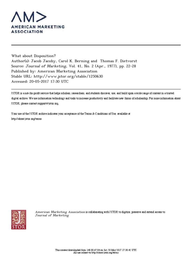 Source: Journal of Marketing, Vol. 41, No. 2 (Apr., 1977), pp. 22-28