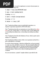 Write a program to generate recursive descent parser functions also the function exp() should be
