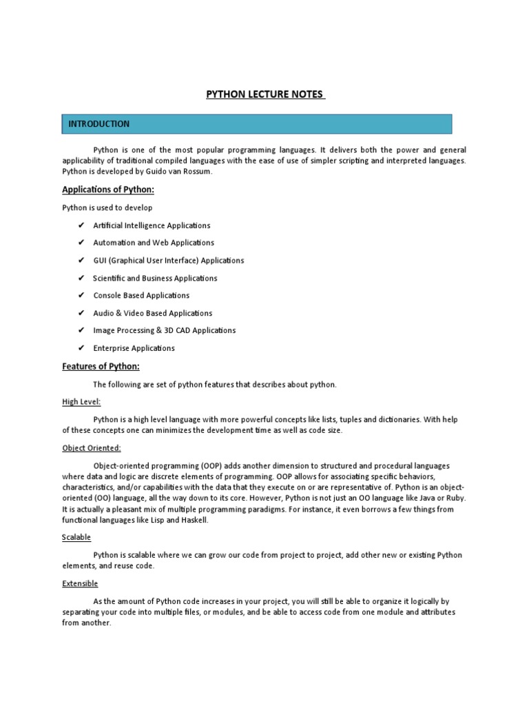 characteristics, and/or capabilities with the data that they execute on or are representative of. Python is an object-