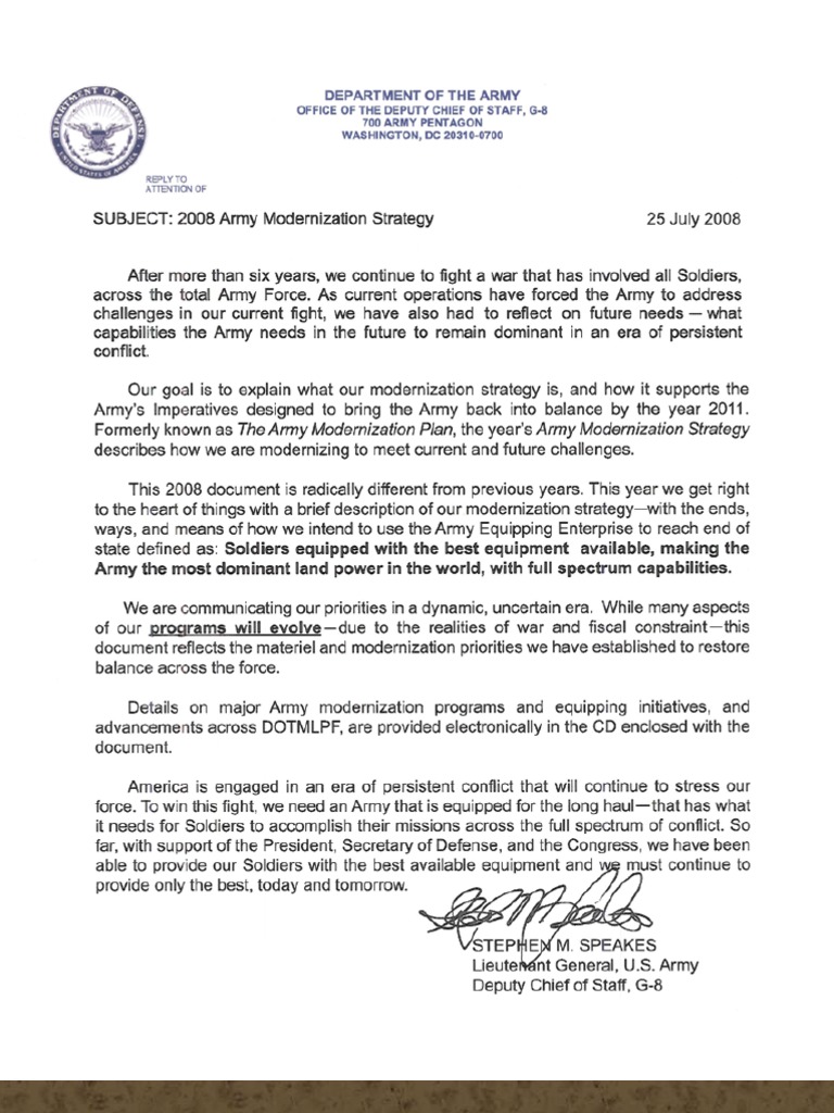 Read The First Page....The concept and assumption of an era of continuous war as Strategy shows the author believes his Army is unable to accomplish its only mission, which is to end war!! This is absurd! Also,the document is based upon GWOT (Global War On Terrorism) which the Chairman JCS removed from all military fighting manuals as his first order in his new position as the highest ranking military officer in the USA!!