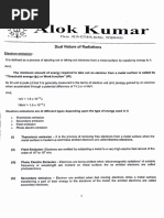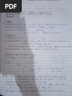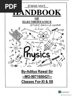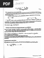 SE 4 The work required +e be clone in moving“the test ch an innit small dis| slacement O7@ « de ad rough dws F2dP - $y2.d =-sytdhcaisc dW =+SyE(-dy) -@ Gl dl=-dr_) Fon @ and & Ee aay Scanned with CamScannerwc onductors ,instilators and Dielectrics . Conductors are Those substances Thakean conduct electric Charge drom one place to ano' er A conductor can, concluct electrrert because op the dre electrons present in tHemer ions. In metal conductors the charge carriers are electrons Sn electrolyte Conductar the ehoge carriers qe both positive and nepeye ions. Some nbortant results regaucling. cledHrostatres of conductor Tnsicle a conductor, electrostaticUfield is 4210. At the surface of a charged conductor, electrostatic field must be normal tothe sur ace At everty, point - he interior of a conductor cally No, excess charge insite sic 2 3 y | Electrostatre potential ts Constant Throughout The valuthe of the conductor and hasthe same yalue Cas “inside) on if surface - 5-Electric 4reldl at the surtace of a. hai Condycter E= RR Kore s-rethe surface chardeclensty-and ff isa unit veetor normal tothe su inthe Gutward directron , [Link] bethe charge and Field con#iquratton outs icle ,an yea ae uence’. in aconductor temaits shielded from obttside electrical in 2 thetrelal inside the cavity,is qlway ‘[Link] ts Known as clectrostatre shielding. he ahd be made uke of in brctecki see Give inchuamentsiom olfstde electrical influence . t HTnsulettors : The materials which donot Mave q1ee electrons in Ahem. are unable to conduct electricity angle termed as inatulators, An inaulecfor may behave din the fellowmg tire Ways: Fis main coneluct electri Thtou a and 7 suet ally, che B)S+ man ot conduetelectriet HOU tonal ing electrietiel eer charges are produfed ont faces speed eect a Calleal dieleethre . Soa dielectric can be defined ax an inaulaby that tranamits electric e4¢eete without conducting Cobacitor - @pacitance is the property Bt aconductor ot system ef conductors Hhaj deseribes its ability So store electrical inth eleciric. Fielel avound it Gn case 4 aniscleted eddueter) a | ov in it Cin case ie sytem concluctors) ae case of an ea Heel ae ‘ duct we qive same charge @ to anisolalz, ib viwe give racer qe a a ee luctor ib potenhal @) Here C > cabacifance Pr,case 3 a % tem eopeluchors, C-@ ts The charge. wrich has been tr oy Se Ean! ohms arc Stelncen ence Scanned with CamScannerNefinilion ot cabact tance pacikance, tselefined az the amount ch charge necessq Cal 4o increasethe bo rental ef a conductor (or potentral di dy between two conductors bi ead volt. SI unit Cabacita = Wa SI unit = = | Parad . xX The calaig an ealaled sbherreal conductor , Leb usa ‘consicler an Nccoleted spherrcal conductor xf vaelius ¥ -having-charge Genel placd tn air The potentral at any points on the surface ofthe conductor 15 yee . CabriciFance , C= Y% the ape le ae b> Let us eee a abapatt chaiaecl metal plate A. Place an uncharged plate @ close te i. charge inductron, the nearer face a preciaes an AE et char. ae its PartRor 4 ‘cice acqtires a. positive. char in hareon B fends he teduce the a Ger Palen a late A. itive chargeck & ‘eye increase the potential rl i ve he He tively Faced} 8 is nearerto A bet ere pesttively che aged ithe fe plate,8 near A is to tecluce + plate [Link]. More char. will have to be supplied to plate A A (aise gee ae ctentral 98 before In otter words the be sett me ae A of holdin charge chas {ncreaseg cftedl en Benge Fin, sally’ ha Lo °. ear ae cis shown ing tt he tial “A bleyte At 6 By er vedltics Ge ikean ae still pe ch arge hus -bringing an ear Conductor alos ta char condl pea Crteate te, cabaci tance dhe latter .Suctfan ayrengement is calleal a capacitor So factieay ponent) plates A and ae es ledo et battery Th Q pe ve crm 2 hus i ae ently ol k still ce p “i +l ~ +P ~ alt bh a fig S 3. = Scanned with CamScanner aa of Heal B ta ete + FFFThe ite atalle| plate air cabac mee lel plate aloes e consists gine metal plettes, one carruing-a el aa 10) and offre he potential of oF th Teanee late stn [ tive bet anamount Vv re ce surk lace ie a deny = V ye *elalely ae fh one ‘a oer pate = Alea cf one ace of et er plate E » Electric Bensenstt between the Hates V = potentral iS erence belbicentheed bl plates, c= VWs E=%e, Cs Wr iV = = z - ae > Ve Eel = Fl od Cz Ve A Dielectric Substances Non- polar clielect es, In such clielectrics the Centre of mass of all posthive cher es( protons) ina molecule ae saith the centre of mags &alll'the neqative charges fect ere: ra sthe ee not! elect ically i but al yer ipole méments . Inthe presence of an extemal fielcl ithe two centres og charge Fos slight ts sebarated and gach molecule becomes a dipokVhatt ull pele moment, Thus in the presence. a Feld sthe cee c gets bo! lartsecl , Plar dielectrics : In polar Wdtelectries Ce- rater) the centre of. assof brotong in the molecule does not toincide withthe centre ml electrons Thus each molecule behaves as a dipole aving-c permanent dipole moment A Dielectric in an external electric die dl sy Supbose a dielectric slab ta placed ina “uniform 2a electrre Prelel df intensity &, the electrre Preld will Se P|: polarise ever ctopolesle et of the slab. The pesitive lpampmnaae charges willbe shit bed sli ns pears t" Ba 2 Qeaq) Hhe een charges towards The ri sub « IPoel Slab gets sey oe al the FePt stutboee meng mee This! sets up adield Es inthe opbes io Scanned with CamScanner@ : diction swhich isless than &, .The net field inside the slab becomes 2 &-E;'. The dielectric constant K dhe sublance is defined as the ratro Kee 5 [The Dielectric Stren ok at dielectric isthe maximum value db e electric frelelthat ean be abblied tothe clielectric waive its electrre peor ie- without Meerevting- electrons ‘from ib atoms w molecute fon es for air the dielectric shength is Bxl04fn . }Can ametal sphere ol radius tem Rel ot charge o} ie) sty Ye oe electric field intensity, is maximum att points veryy-closente he “sur e, = Y