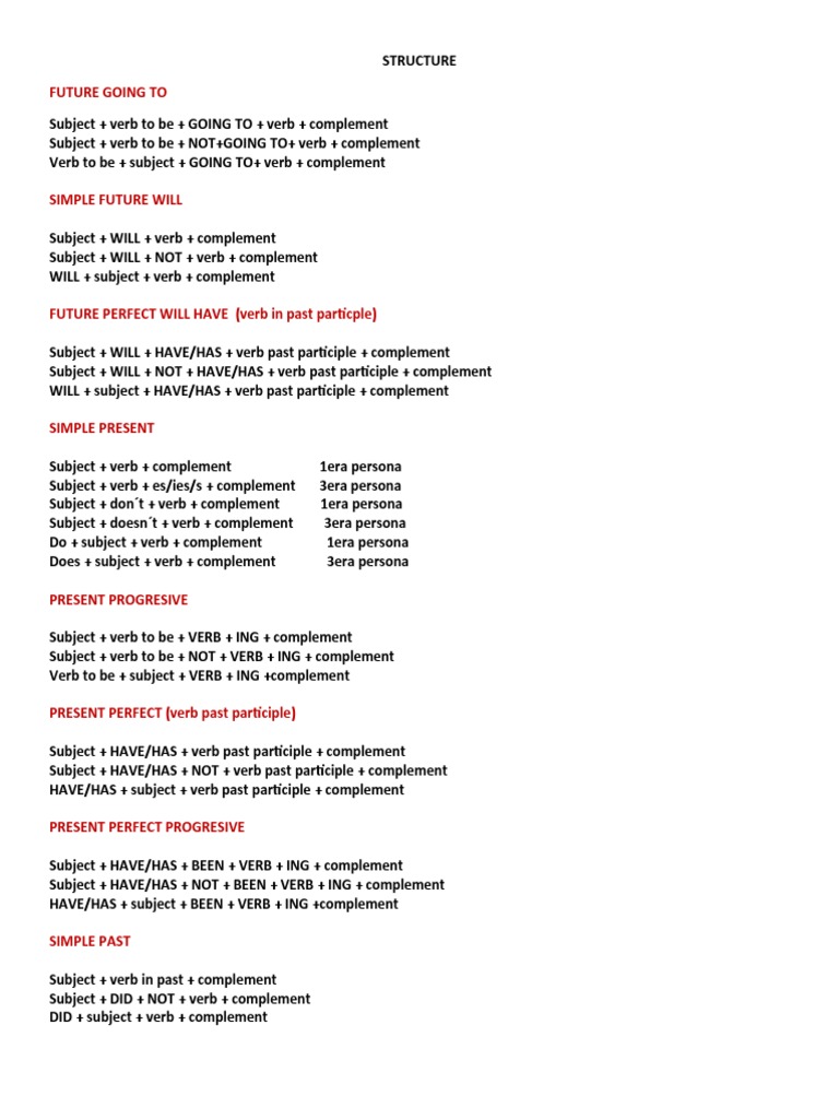 Subject + verb + complement 1era persona