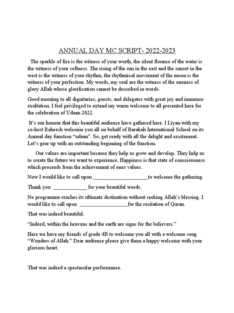 ANNUAL DAY MC SCRIPT- 2022-2023
