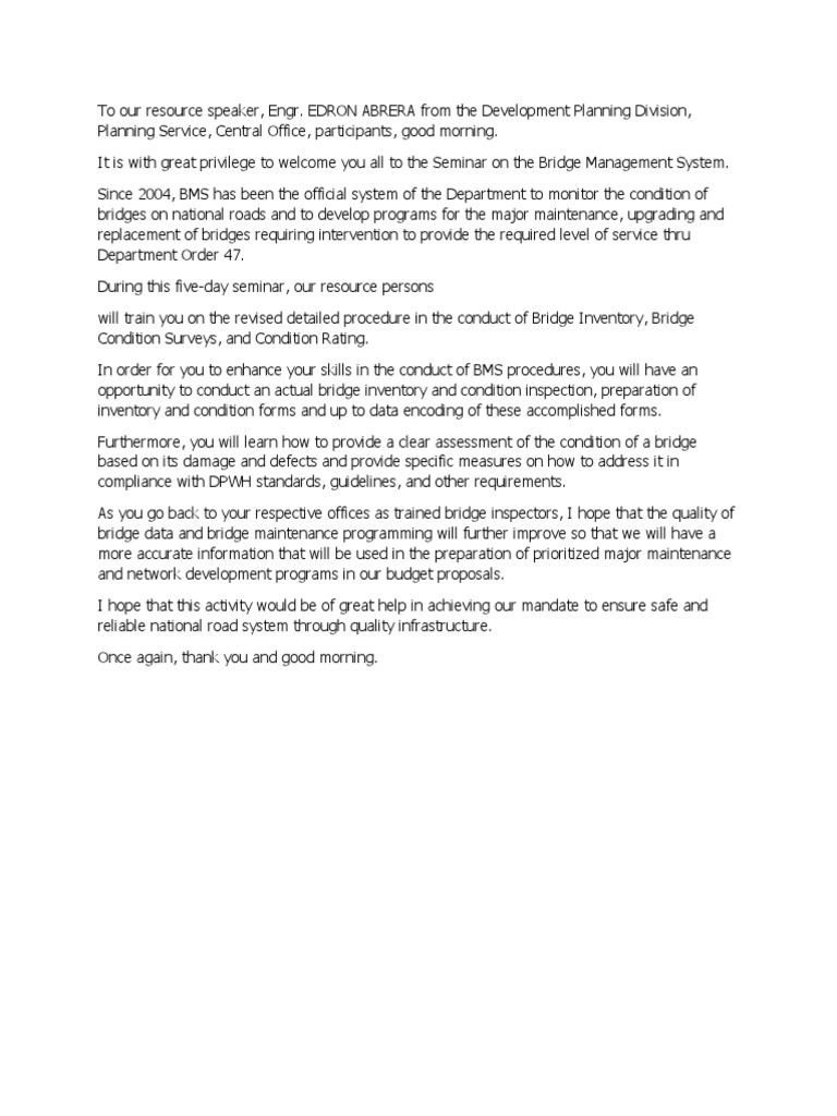 It is with great privilege to welcome you all to the Seminar on the Bridge Management System.