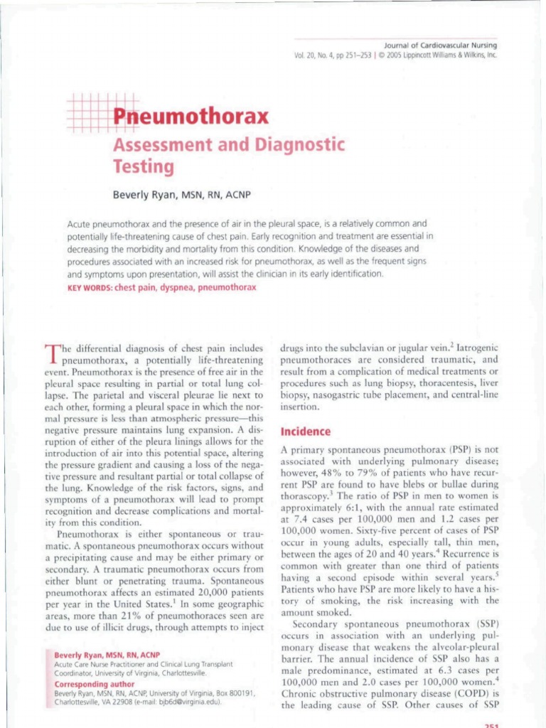 ficult to interpret, as the pleural air rises and collects Critical Care Nursing. St Louis, Mo: Moshy; 1995:365.