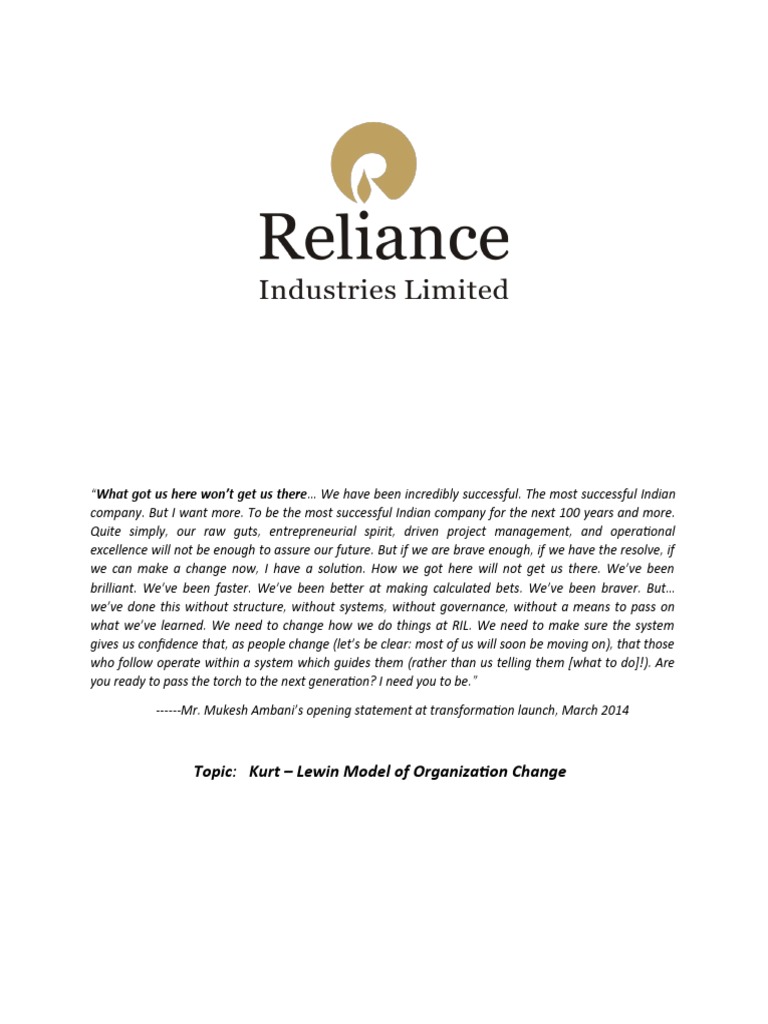 Mr. Ambani led RIL achieved the desired changes much faster than other organizations because