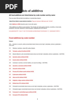 Additives and E numbers for colours, preservatives, antioxidants, sweeteners, emulsifiers,