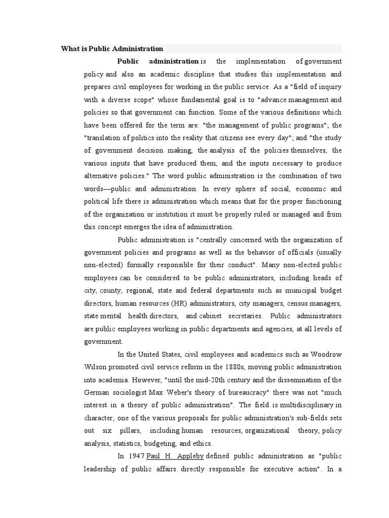 Wilson of his essay, "The Study of Administration" in 1887 is generally regarded