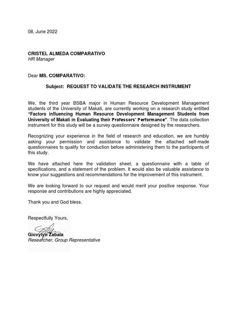 Subject: REQUEST TO VALIDATE THE RESEARCH INSTRUMENT