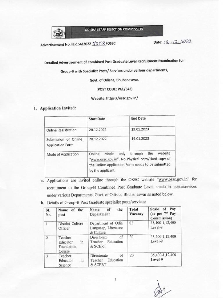 ‘a. Applications are invited online through the OSSC website “www.ossc.gov.in” for