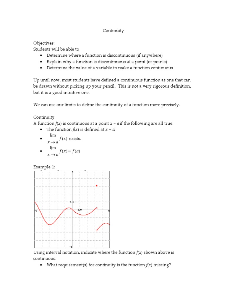 Find all values x = a where the function f ( x) = is continuous. At all