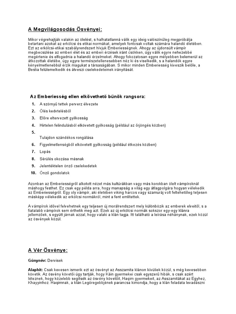 Ezt az erkölcsi-etikai szabályrendszert hívjuk Emberiességnek. Ahogy az újdonsült vámpír