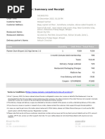 1. This is only a summary of the order placed by you on Zomato Platform, and not a tax invoice. The tax invoice towards the food and