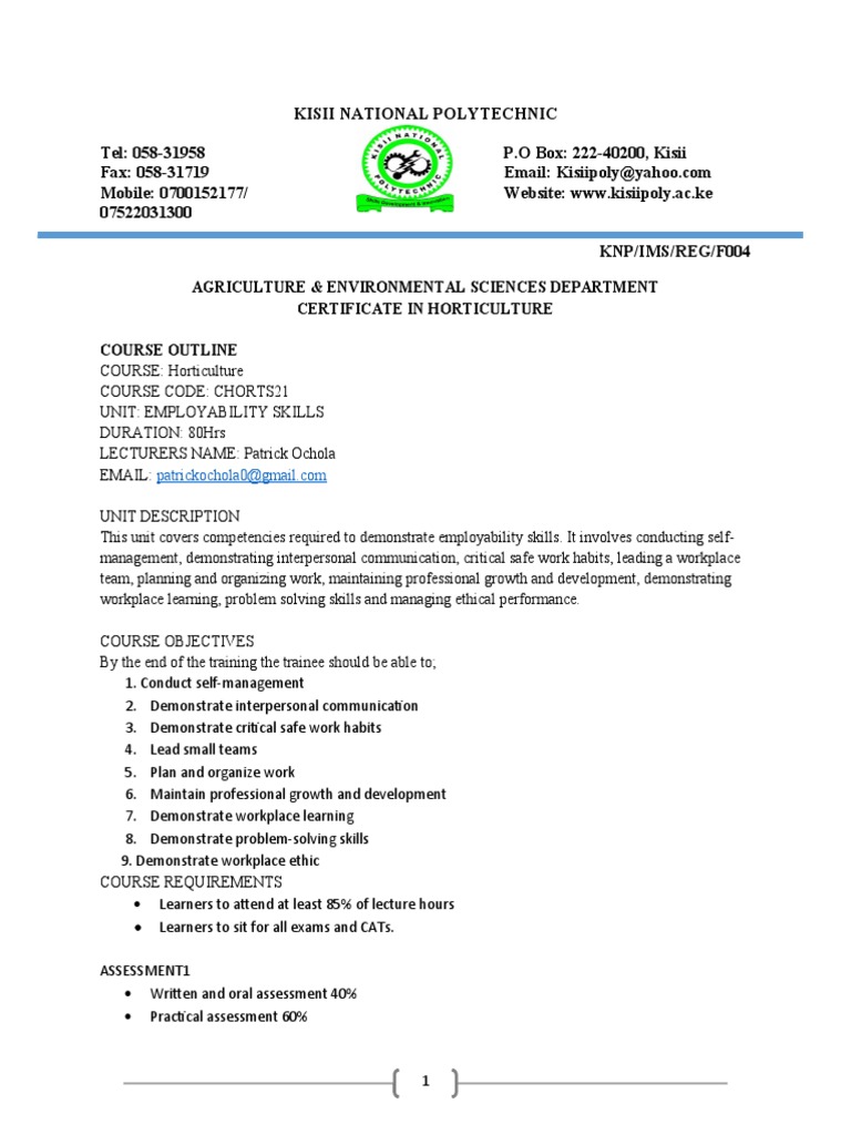 This unit covers competencies required to demonstrate employability skills. It involves conducting self-