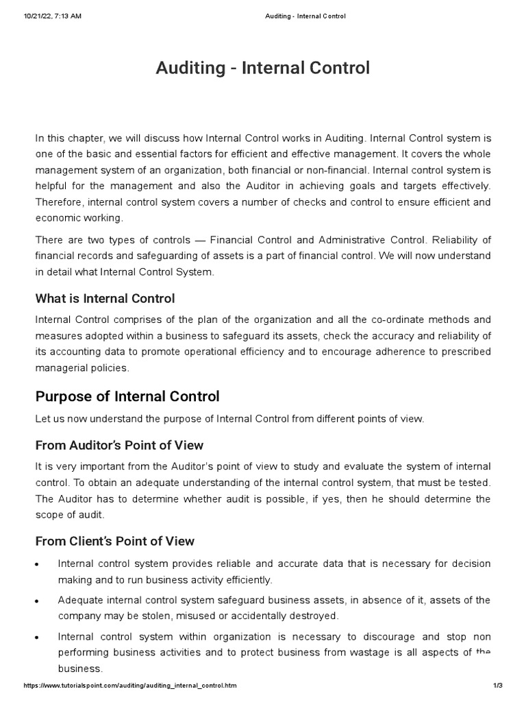 10/21/22, 7:13 AM Auditing - Internal Control