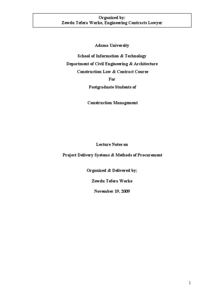 Design-Bid-Build: The Ministry of Works & Urban Development