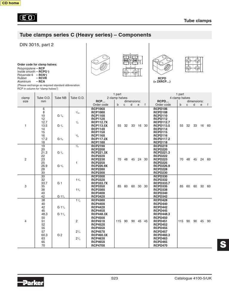 clamp Tube O.D. Tube NB Tube O.D. 2 clamp halves 4 clamp halves