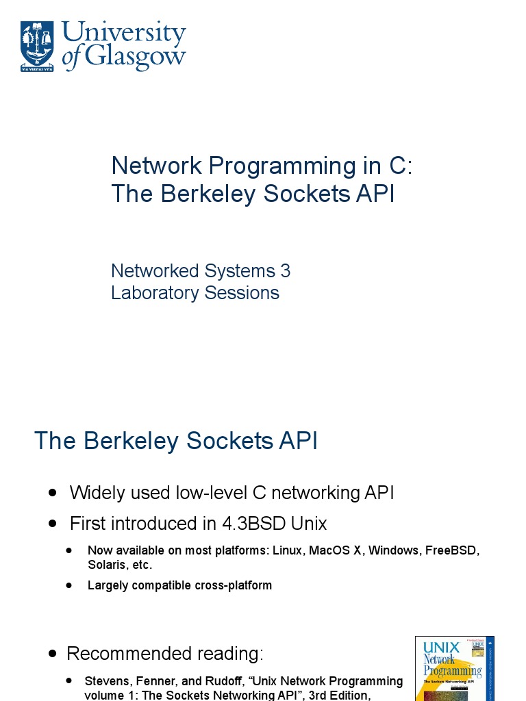 volume 1: The Sockets Networking API”, 3rd Edition,