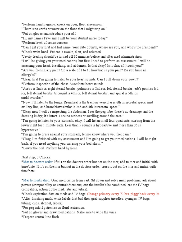“Next, I will be giving your medications through the peg tube.”
