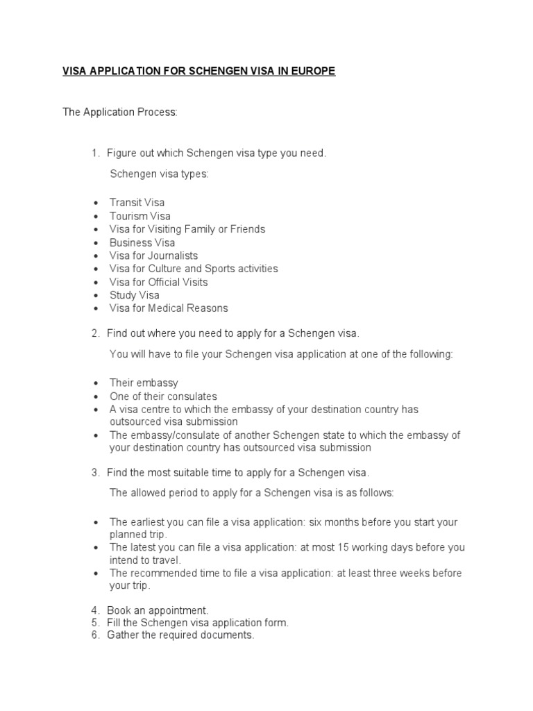 VISA APPLICATION FOR SCHENGEN VISA IN EUROPE