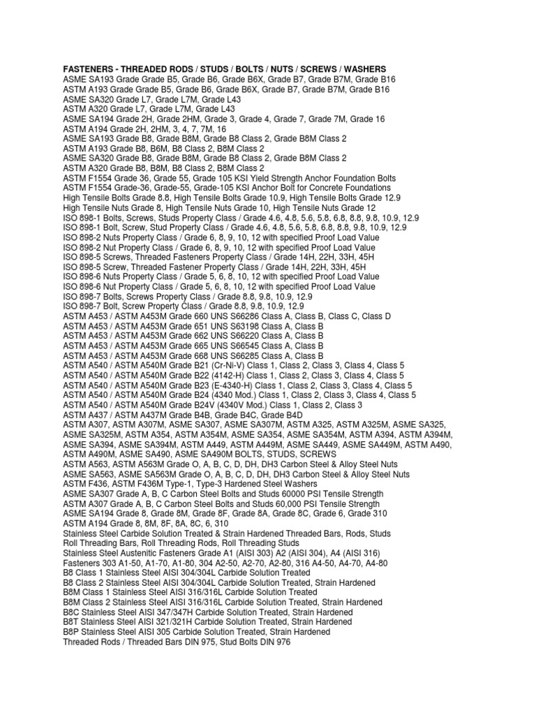 ASTM A307, ASTM A307M, ASME SA307, ASME SA307M, ASTM A325, ASTM A325M, ASME SA325,