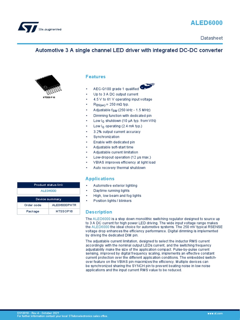 The ALED6000 is a step down monolithic switching regulator designed to source up