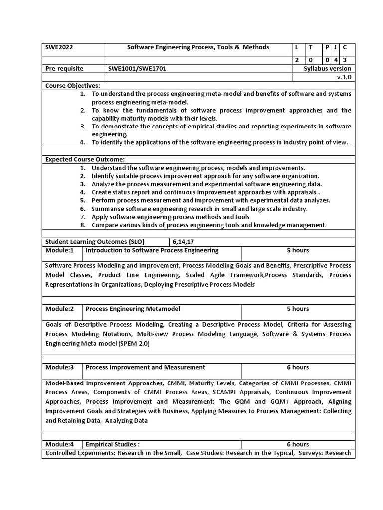 SWE2022 Software Engineering Process, Tools & Methods L T P J C