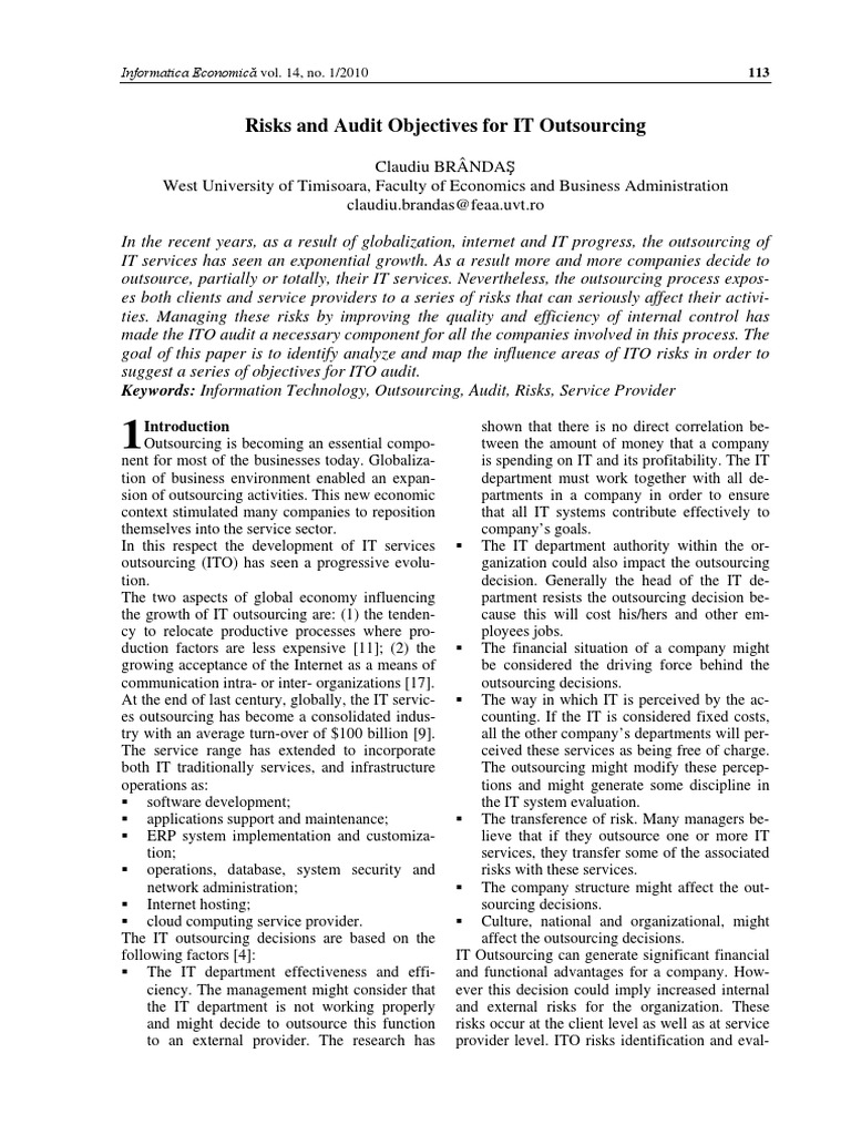 [3]: (1) motivations of IT services outsourcing, cover some aspects of ITO audit [20]. Besides