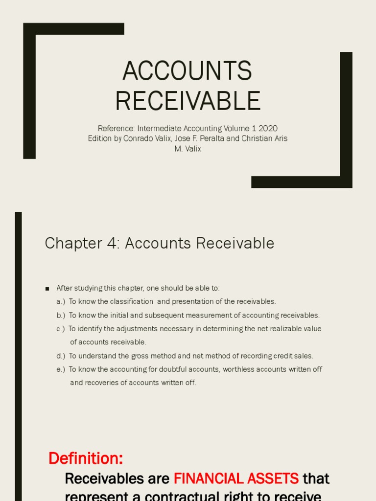 b.) To know the initial and subsequent measurement of accounting receivables.