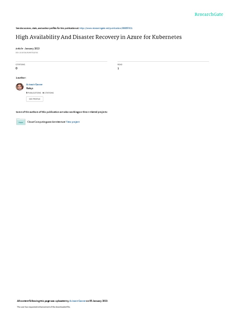Keywords: Azure Kubernetes Service, Disaster Recovery, Cloud Computing