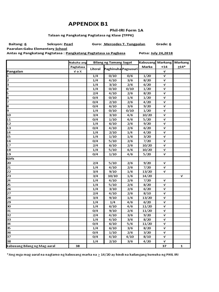 *Ang mga mag-aaral na nagtamo ng kabuuang marka na > 14/20 ay hindi na kailangang kumuha ng PHIL IRI