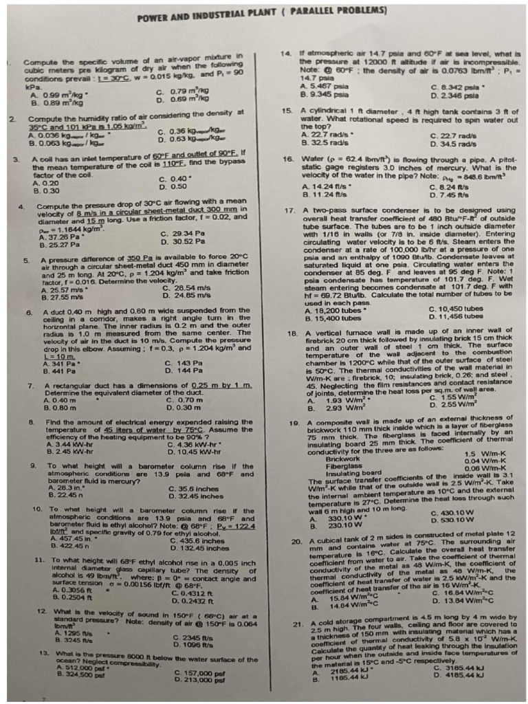 erumtany for tre tee areas folows: |POWER AND INDUSTRIAL PLANT ( PARALLEL PROBLEMS)