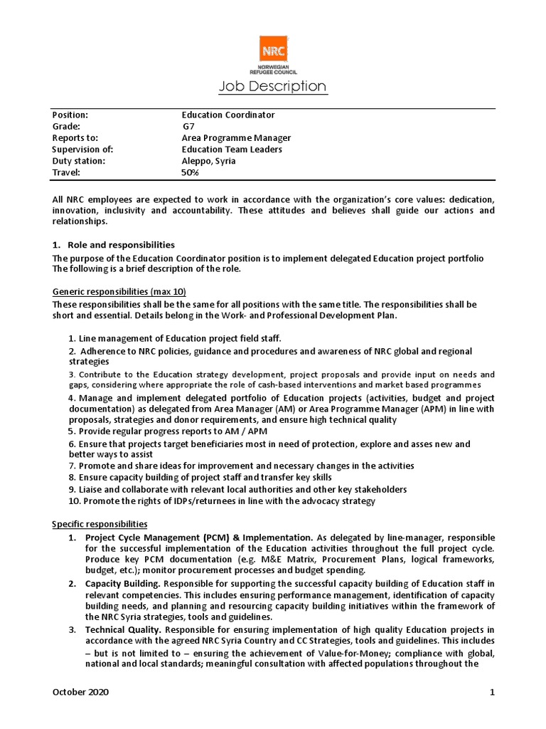NRC Syria Education programme development initiatives (e.g. Core Competency Strategies). This
