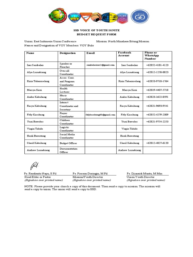 NOTE: Please provide your church a copy of this document. Then send a copy to mission. The mission will