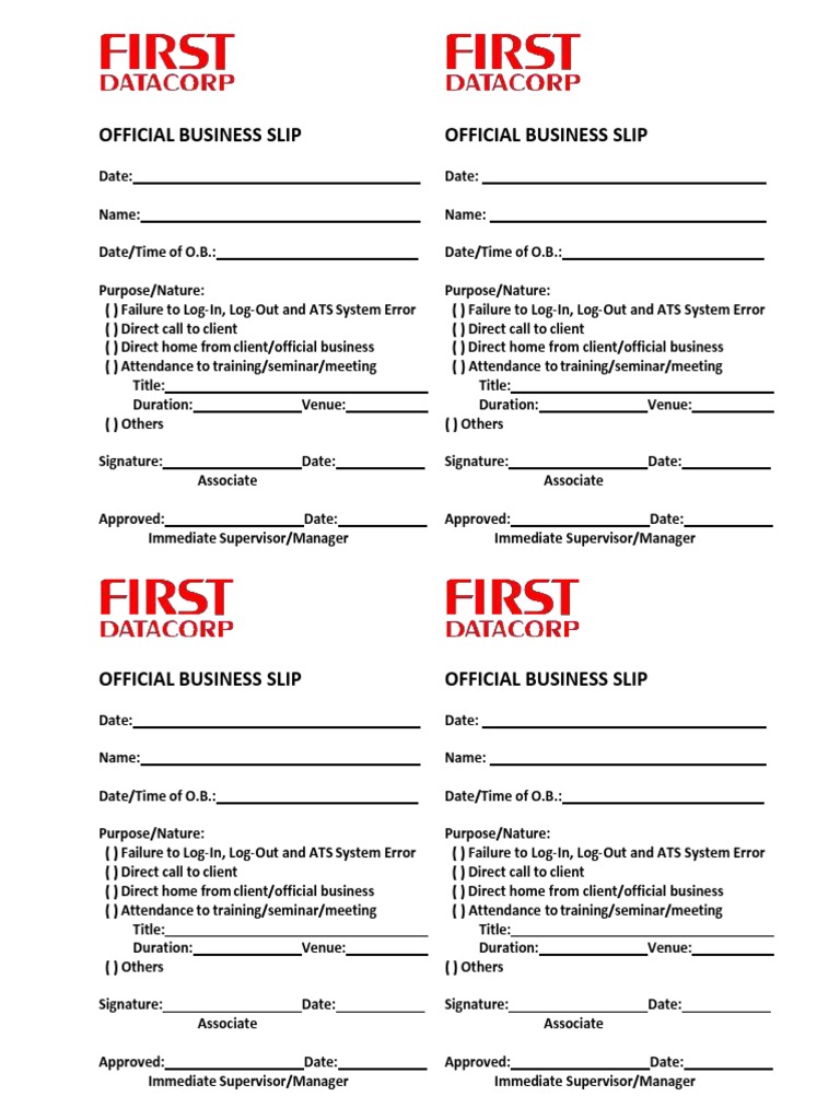 OFFICIAL BUSINESS SLIP OFFICIAL BUSINESS SLIP