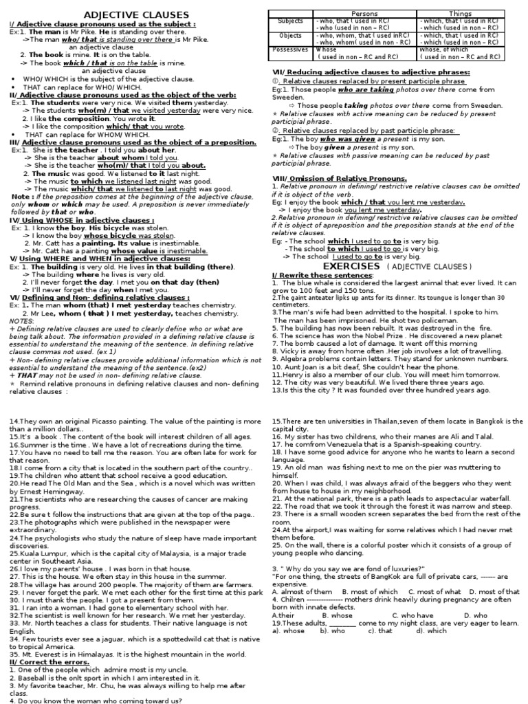 ADJECTIVE CLAUSES
