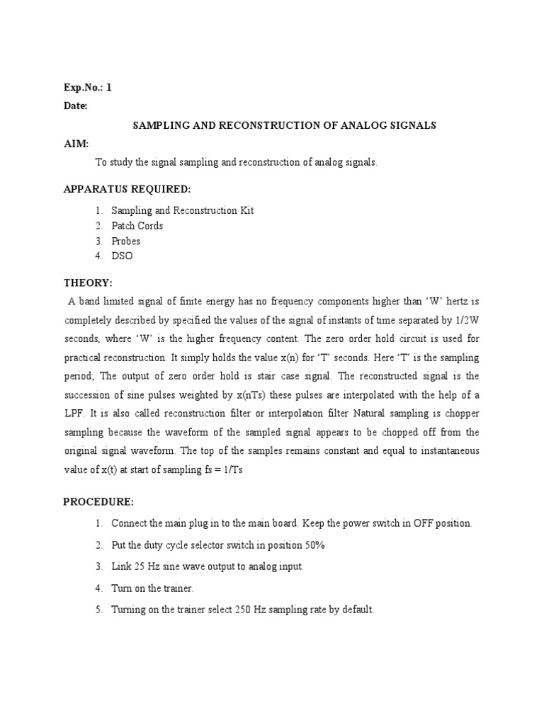 SAMPLING AND RECONSTRUCTION OF ANALOG SIGNALS