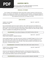 industry. As a Customer Care Assistant, I am competent at serving customers, ensuring high